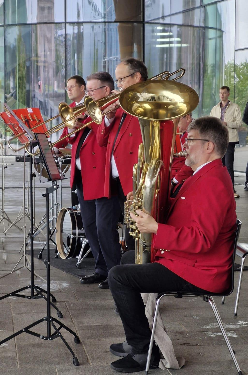 Helsingin puhallinmusiikkiyhdistys järjesti lauantaina 30.8.2025 klo 11-16.30 Blow!-kavalkadi - Oodi Puhallinsoittimille -tapahtuman Keskustakirjasto Oodin lipan alla.