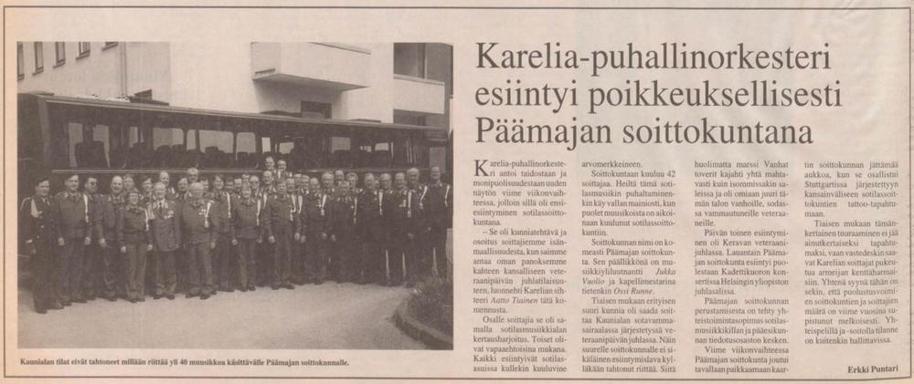 Vuonna 1997 Karelian soittajista ja reserviläismuusikoista yhteistyössä Sotilasmusiikkikillan kanssa muodostui "Päämajan soittokunta", joka esiintyi, kun tarvittiin sotilasmusiikkia erilaisiin tilaisuuksiin pääkaupunkiseudulla ja kauempanakin. Puolustusvoimilta saimme lainaksi sopivan uniformun.
